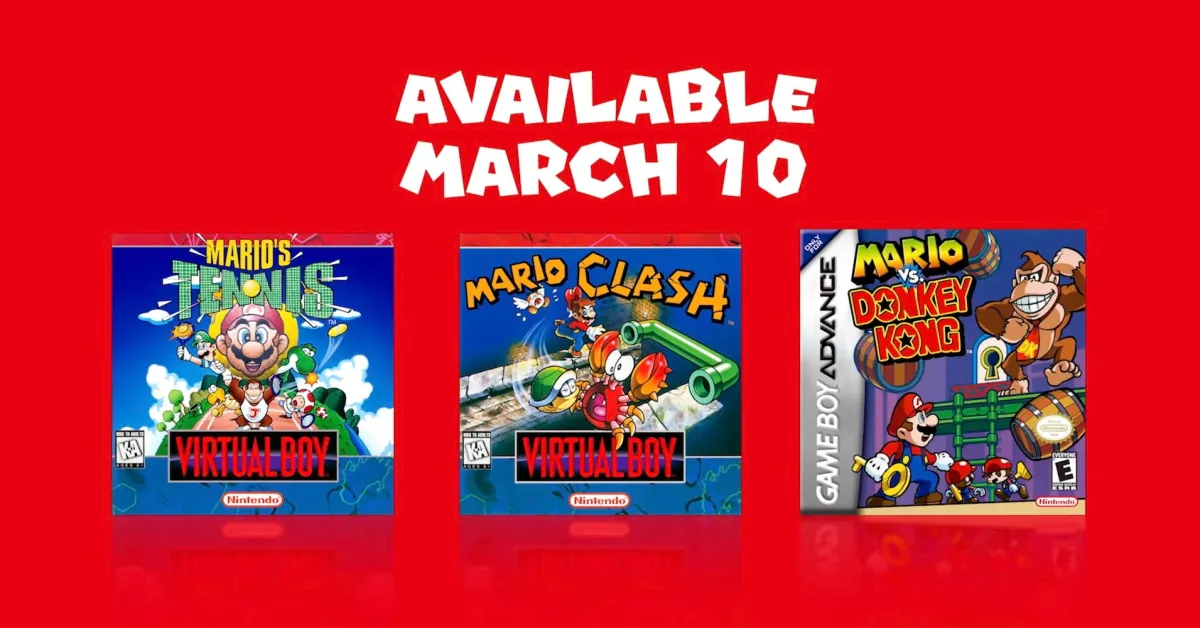 Os dois primeiros títulos reforçam a biblioteca da Virtual Boy disponível no serviço. Mario’s Tennis é um dos jogos mais conhecidos da consola, enquanto Mario Clash aposta numa jogabilidade arcade onde o objetivo é derrotar inimigos atirando projéteis entre diferentes planos de profundidade.